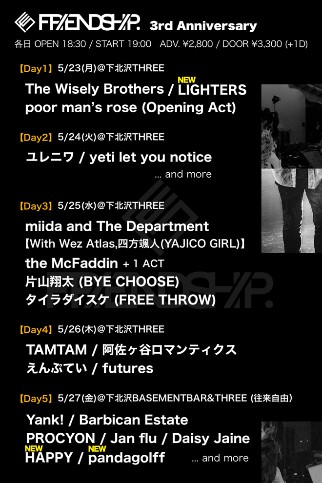 FRIENDSHIP. 3周年イベント下北沢編にLIGHTERS、HAPPY&渋谷編に江沼郁弥ら出演