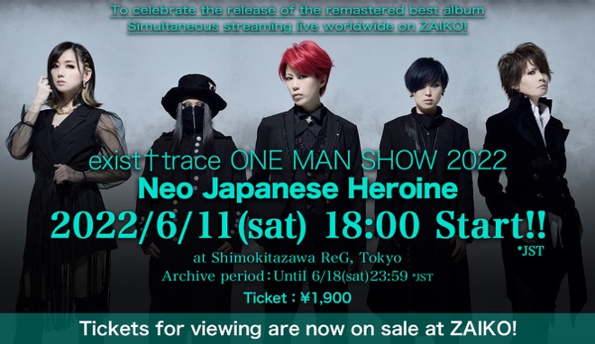 そして初のアルバム海外リリースを記念して、6月11日(土)に全世界同時ストリーミング配信によるワンマンライブ<exist†trace ONE MAN SHOW 2022「Neo Japanese Heroine」>を開催することもアナウンスされた。視聴チケット発売はZAIKOにて。なお、同ワンマンは有観客リアルライブとして下北沢ReGにて行われる。