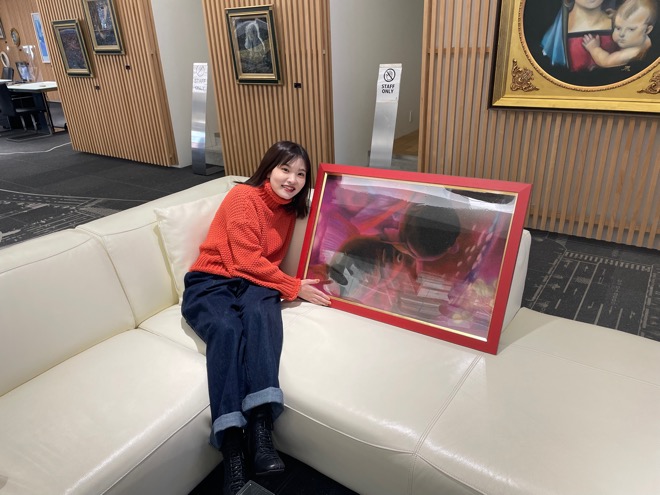 MATSURI:ギャラリーにお邪魔させていただいた時、Moecoさんの作品をたくさん観させていただいたんですけど、それぞれの輝き方があるのを感じました。1つ1つに、その作品の物語があるというか。“どういうことをイメージしながら、この完成形になったのかな?”とか考えるのが楽しかったです。そして、さっきも言ったように、とにかく綺麗だったんですよね。