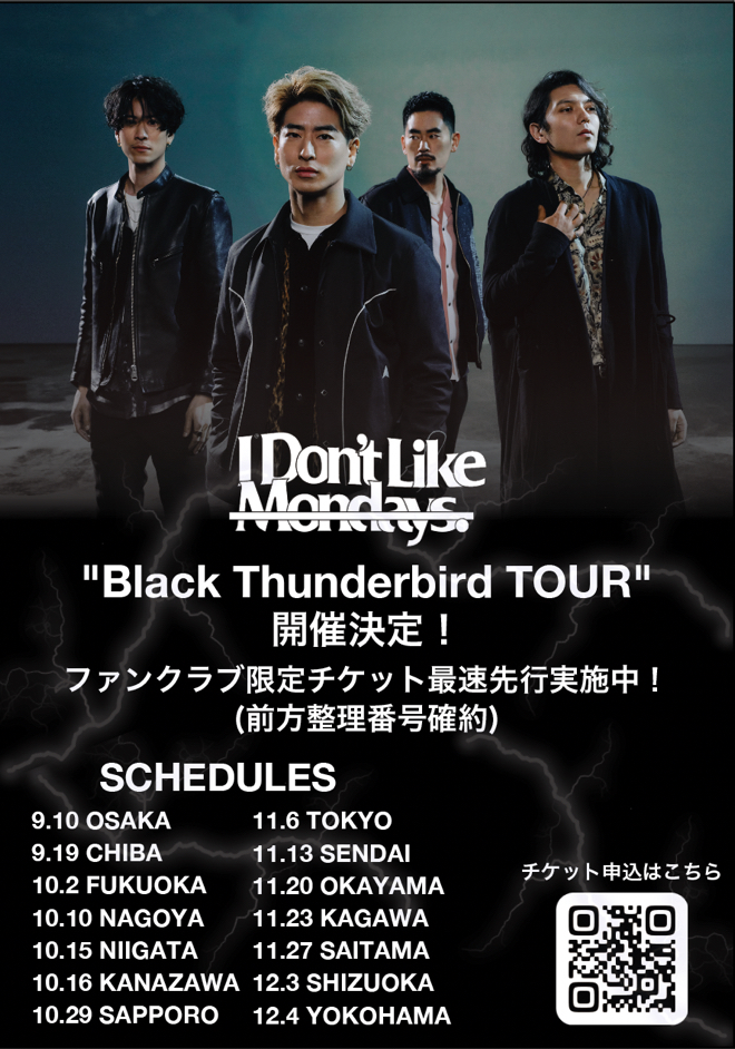 I Don’t Like Mondays.、全国ツアー<Black Thunderbird TOUR>開催決定