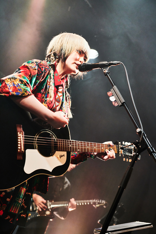 バンドメンバーとの和気藹々とした時間を経て、アコギの弾き語りからスタートした「嘘つき」、そして3ヶ月連続リリースの第2弾「ヤコウレッシャ」が披露された。続いて、ライブでは欠かすことのできない楽曲「最後の晩餐」、「花束の幸福論」をパフォーマンス。「もうちょっとで終わっちゃうー(笑)」と、本人も驚くほどあっという間に時は過ぎ、ラストスパート。勢いが加速する中、自身の楽曲でも人気の高い「たのしいバストの数え歌」で客席のボルテージはさらに上昇する。「今日は池袋にお集まりいただきありがとうございました!(ご時世柄)タオルを振り回せないので、拳で語ってください!今日はありがとうございました!!」と述べ、「夏の祭りのわっしょい歌」で本編が終了した。