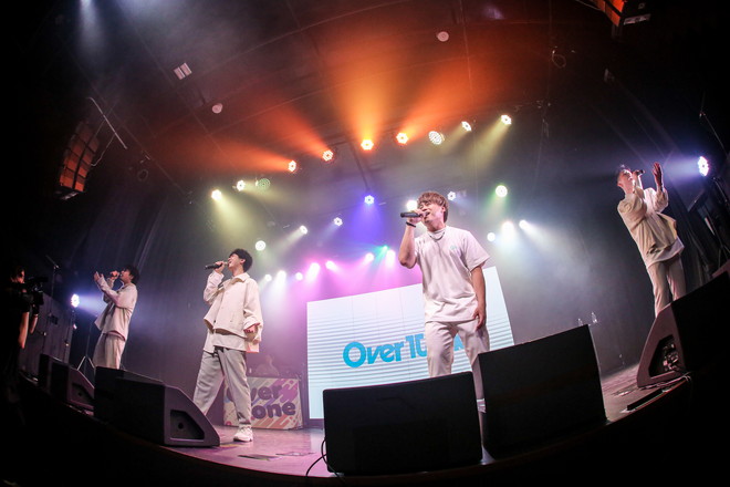 これまでのアップテンポな雰囲気から一転して、繊細なピアノのサウンドにのせ美しきハーモニーを聴かせた「僕に出来ること」、「I&YOU」でバラードゾーンへシフト。温かい雰囲気の中、MCで3月にメジャーデビューしたことについて触れると観客からはたくさんのお祝いの拍手が送られた。「僕たちは先月3月12日にリリースした「ゼロ」でメジャーデビューをさせていただきました。約5年間活動してきてやっとスタート地点にたどり着いたという感じです。OverTone、これからも一生懸命突っ走って行きますし、ぜひついてきてもらいたいなと思います」と語る4人の姿は胸が熱くなるものがあった。