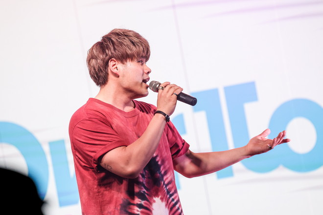 そして「One less」「Guilty」で一気に舵を切り、爽やかなナンバー「夏ミカン」を歌いあげると客席のボルテージを徐々に高揚させていく。続くアッパーチューン「Encore」では熱気溢れるパフォーマンスを披露。