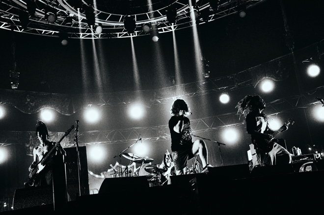 ピアノソロでチェンバロのような気品を漂わせるクラシカルで崇高な「RAIN」、DJ LOVEが両腕を大きく掲げて促すと、オーディエンスもクラッピングで応えステージと客席が一体化していく。Fukaseの「新曲やります!」で始まった曲は、映画『ホリック xxxHOLiC』の主題歌で4月28日(木)に配信リリース予定のブランニューソング「Habit」。もちろんライブでは初披露だ。攻撃的なギターリフにのせて、場内へアジテーションするように歌詞が畳み掛けられていく。