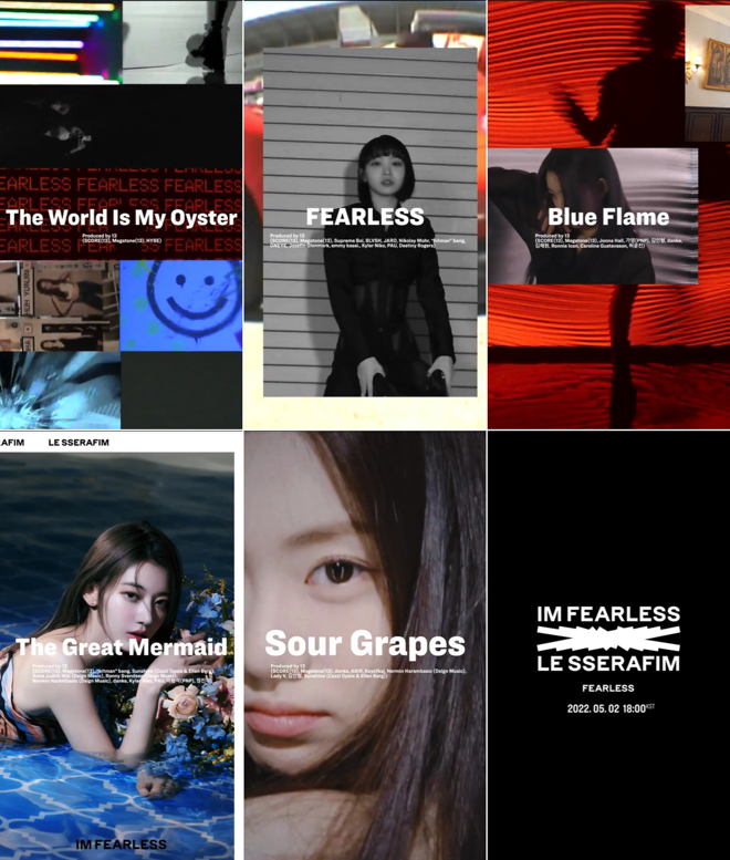 KIM CHAEWON、SAKURA、HUH YUNJIN、KAZUHA、KIM GARAM、HONG EUNCHAEの6人からなるLE SSERAFIMは、HYBEと傘下のSOURCE MUSICが手がける初のガールズグループ。デビュー・ミニアルバムには、“世界の視線に動揺せず恐れることなく前に進む”というメッセージが込められたタイトル曲「FEARLESS」をはじめ、「The World Is My Oyster」やKIM CHAEWONとHUH YUNJINが作詞に参加した「Blue Flame」、童話『人魚姫』をLE SSERAFIMの視点から再解釈し表現した「The Great Mermaid」、『キツネとブドウ』の物語をモチーフに制作されたという「Sour Grapes」の5曲が収録される。タイトル曲と「The Great Mermaid」の作曲にはパン・シヒョク統括プロデューサーが参加しているそうだ。
