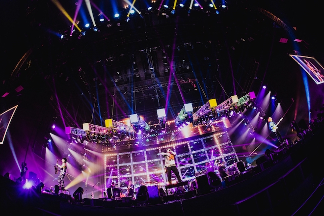 さらに、「今日ここに来るまでの人生の間に抱えた怒り、悲しみ、不安、なんて名前つけていいかわからない感情も、全部ここに置いて帰ってください! 悔いのないように思いっきりいこうぜ!」という藤原の叫びで放たれた「FIRE GROUND」では、藤原のキーボード&小笹のギターがハモるメタリックな速弾きソロが炸裂。プレイヤビリティを堪能する時間はヒゲダンのライブでの欠かせない要素だが、やはりアリーナの規模で観て体感する迫力は格別だ。