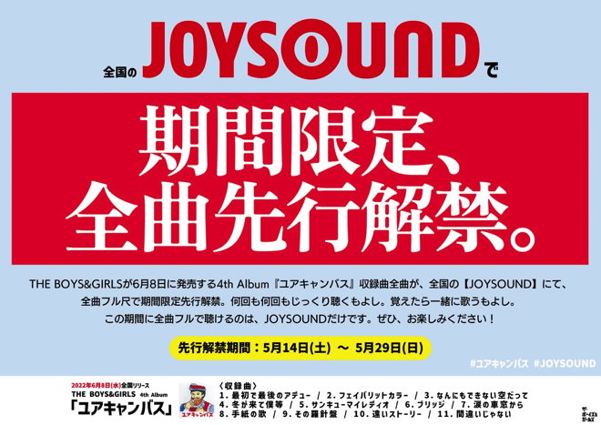 全国のJOY SOUNDにて全曲フル尺期間限定先行解禁