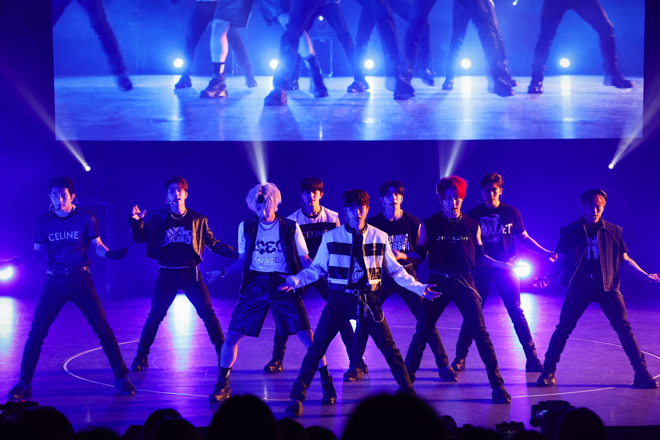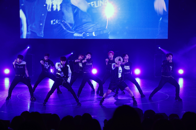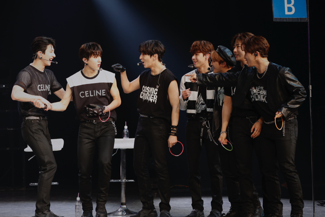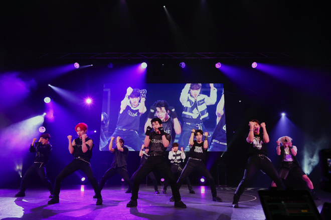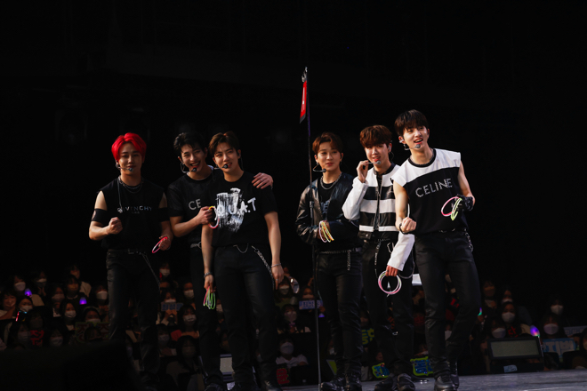 後半のMCでは、5月11日(水)に先行配信される日本2ndシングル「RATA-TAT-TAT」についてトーク。曲について訊かれるとジェヒョンは「初めて聴いたとき、これは僕らの曲だ!と思いました」と話し、ジボムは「レコーディングのときにパワーを出して歌いました」と語る。さらにYは「サビに注目してほしいと思います」と話し、アカペラでワンフレーズを歌唱した。また、「ダンスの大変さを絵文字で表すとしたら?」という無茶無理な質問には、スンミンが「目が大きくなって、口からダラララって出てくるやつがぴったり!」と回答。ジェスチャーでも絵文字を表現し、持ち前の愛嬌で会場を釘付けした。