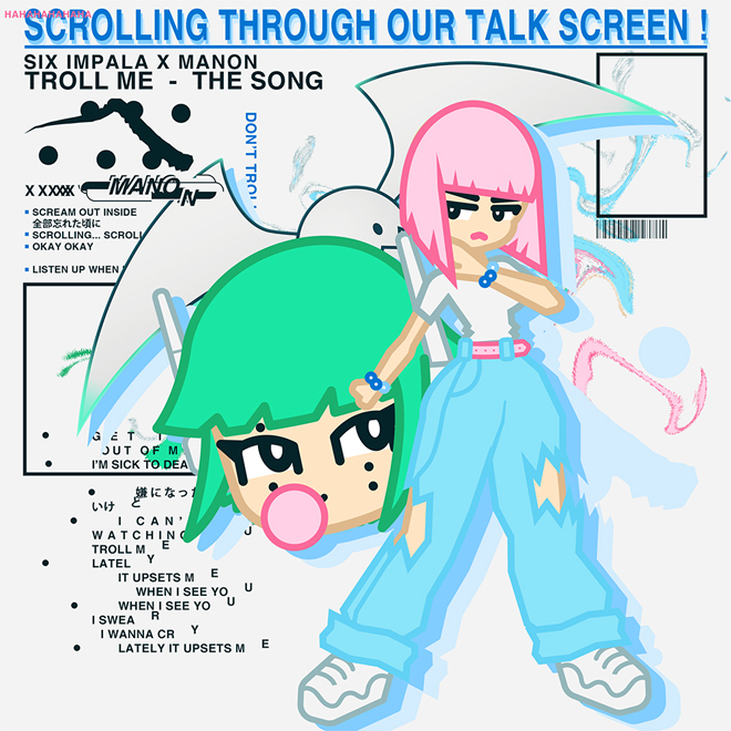 「TROLL ME」は、英ロックバンド“Bring Me The Horizon”のリミックスで一躍注目を集めたプロデューサー集団・six impalaとのコラボ楽曲。エモロックさながらのギターサウンドとMANONのクリーンボーカルから始まり、サビでは彼らのシャウトとMANONの掛け合いというまさかの急展開。Hyperpop 然とした今作は、日本の早耳リスナーのみならず、世界中のhyperpopファンの目に止まること間違いない作品となっている。