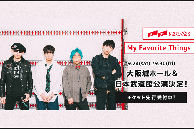 go!go!vanillasが、9月24日(土)の初の大阪城ホール公演、9月30日(金)の2年ぶりの日本武道館公演からなる2大アリーナワンマン公演<My Favorite Things>を開催する。