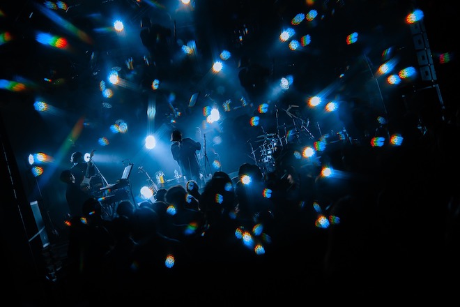 逆光を巧みに操った照明演出がスリリングな「トーキョーワンダー。」では気だるさと気迫がない交ぜになったサウンドスケープでも魅了し、「Shake it Now.」はバンドのグルーヴに身を任せながら全身で歌を繰り出す。序盤3曲でパンチの効いた楽曲を届けると、ポップネスとロック的なアプローチが融合した「心配性。」を境にソフトな楽曲のセクションへ。泣き虫は間奏でアコギを演奏しながらメンバーを見渡したり、楽器隊も音源からアレンジを要所要所で加えたりなど、ライヴならではの新しい色を楽曲へと吹き込んでいく。