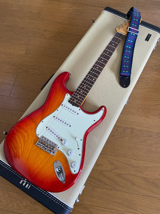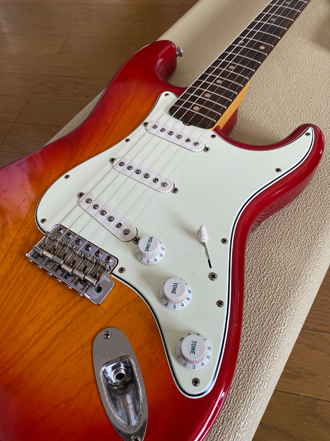 これまで、20本以上ストラトを中心に買い替えたりしましたが、今はこのストラト1本だけになり、音も含めてこれさえあればって思っています。ペグを含む金属パーツとプラ類をレリックパーツに交換して、後はボディのナチュラルレリックを楽しみにしております。