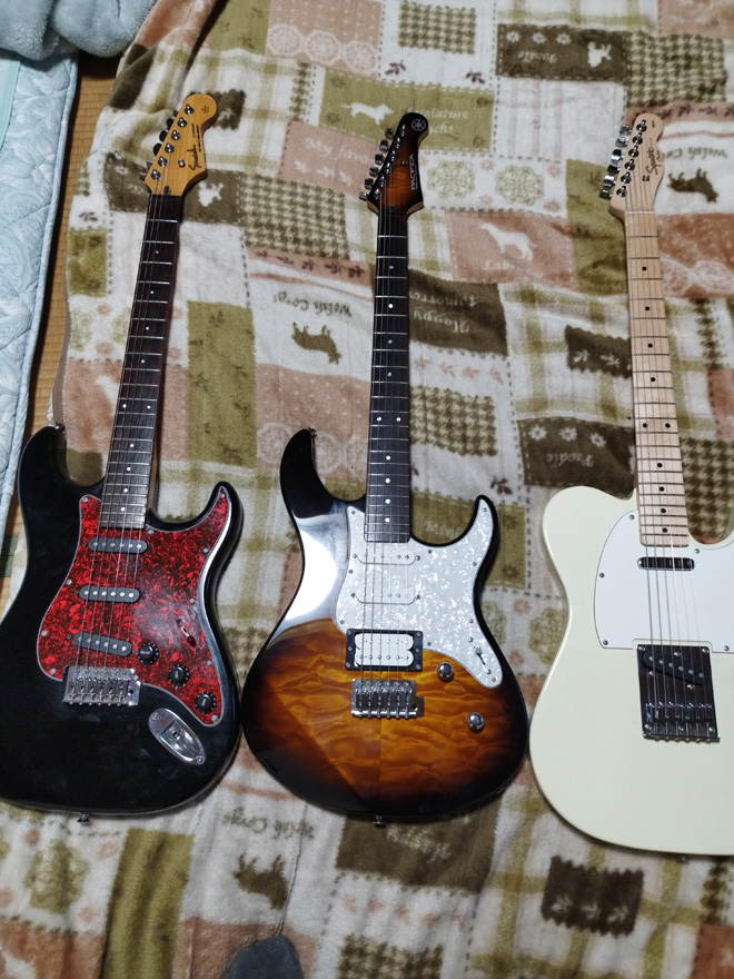 持ち帰って弦交換とフレット磨きでかなり弾きやすくなりました。これで所持ギターが3本に。パシフィカ、ジャンクのストラトと高価なギター達ではありませんがプチハーレムを楽しんでます