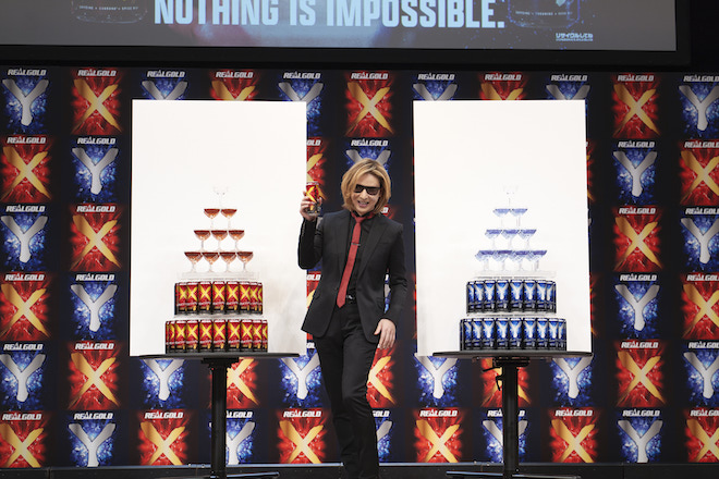 製品自体についてYOSHIKIは「(「リアルゴールド X」は)ステージに上がる前に気持ちを高める、その高揚感をイメージ。思いっきり楽しみたい時に飲んでいただきたい」と。「リアルゴールド Y」は「クラシックの場合は出演の1分前くらいまでずっと楽屋のピアノを弾いている、そのイメージ。デスクワークなど集中したい時に飲んで欲しい」とコメントした。