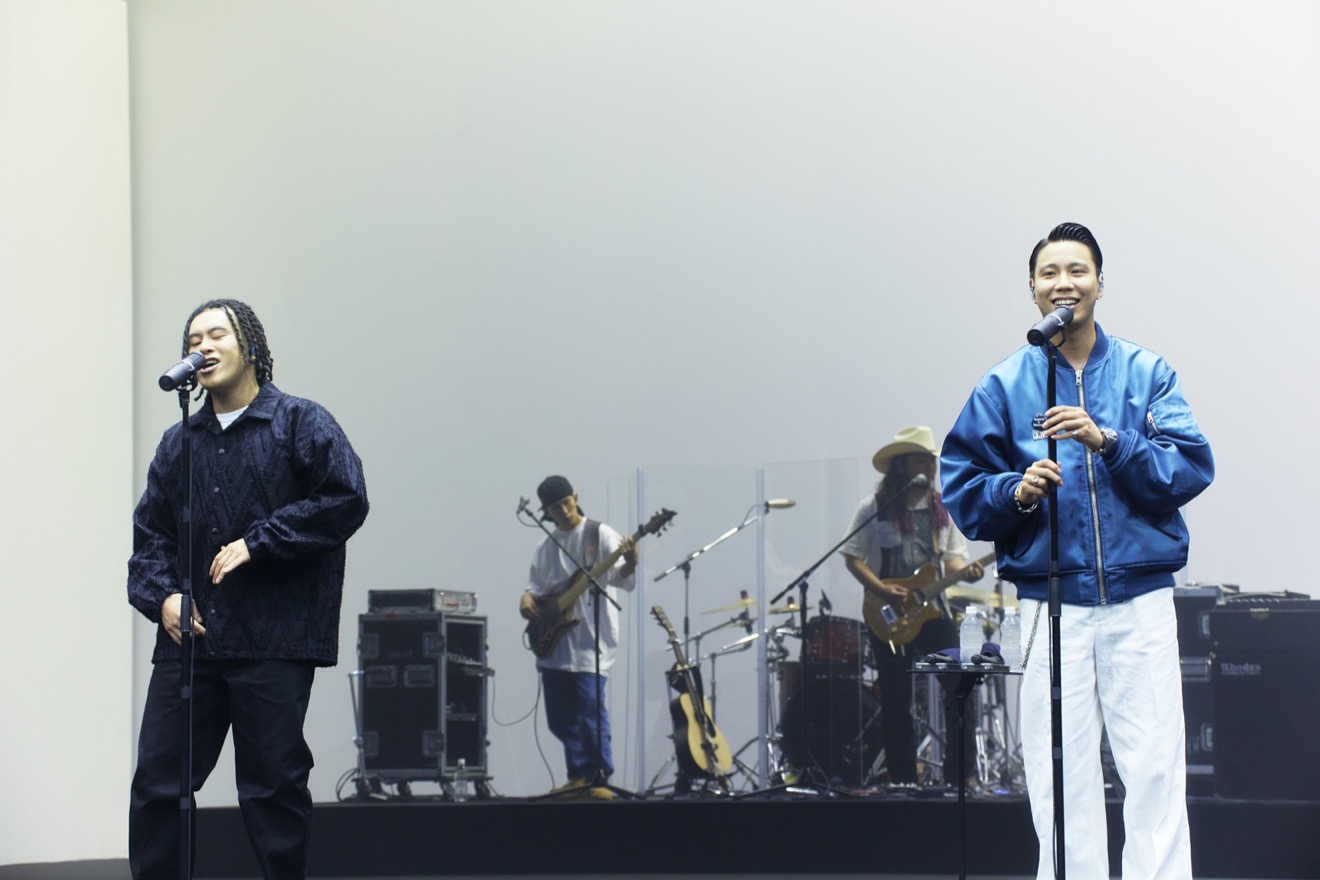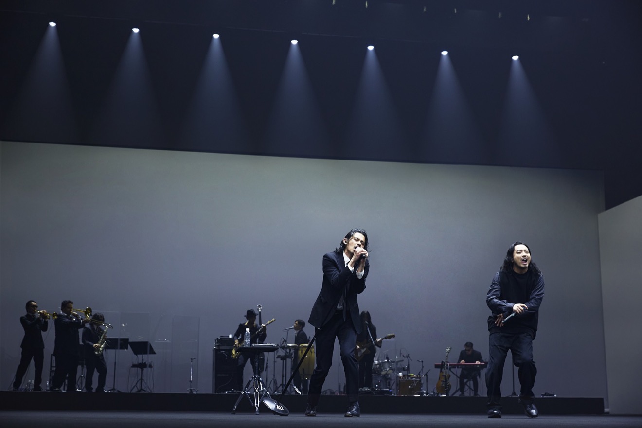 そしておどけた様子でカメラに向かって満面の笑みを舞台袖から見せながら彼らがステージに登場。WILYWNKAとVIGORMANはステージ中央のマイクの前へ、後方では舞台中央に立つGeGと総勢6人のG.B’s BANDが姿を現し、「溜め息」が鳴らされた。ドキュメンタリームービーで「この楽曲を通して『俺なんか諦めかけてたわ』『思い出したな』『マジ頑張ろう』って思ってもらえたら」と語っていた通り、一言一句を大切に扱うことでフローを刻んでいくWILYWNKAとVIGORMANの姿に、静寂を守る客席が次第に熱を帯びていく。