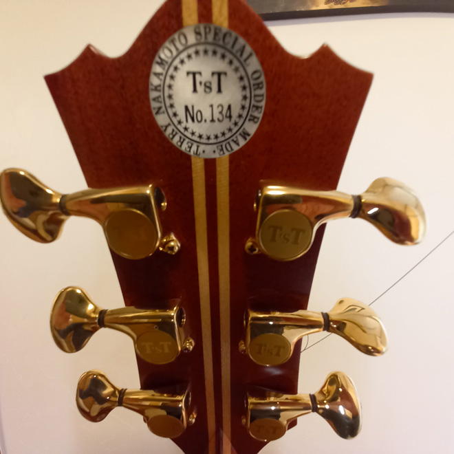 これはまさに正真正銘のお宝だ。うっしーさんが手放すこともないだろうけど、すでに20余年もの経年を持つ貴重なT’sTサウスポーなんて、左利きのアコースティックギタリストにとって夢でしか出会うことのできない至宝の逸品だもの。これからもますます価値は上がり、同時に鳴りも際立っていくのでしょうね。まごうごとなき世界が羨む国宝級の一本、目の保養になります。(JMN統括編集長 烏丸)