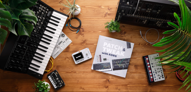 「PATCH & TWEAK with KORG」はBjooks社発行の「PATCH & TWEAK」シリーズの最新タイトル。セミモジュラー・シンセシスとそれに影響を受けた音楽の包括的なガイドブックであり、MS-20 Mini、volcaモジュラー、復刻版のARP 2600 M、SQ-1・SQ-64 シーケンサーにフォーカスした一冊だ。多数のチュートリアル、ヒント、Tipsと、ビギナーからベテラン向けのサウンドデザイン・テクニックについてを網羅した内容となる。著名クリエイターや新進気鋭のアーティストへのインタビュー、コルグおよびARPのエンジニアによる開発ストーリー、コルグとARPの伝説的なシンセサイザーの詳細な年表などの記事からなるこの冊子は、シンセサイザー愛好家必携の一冊だ。