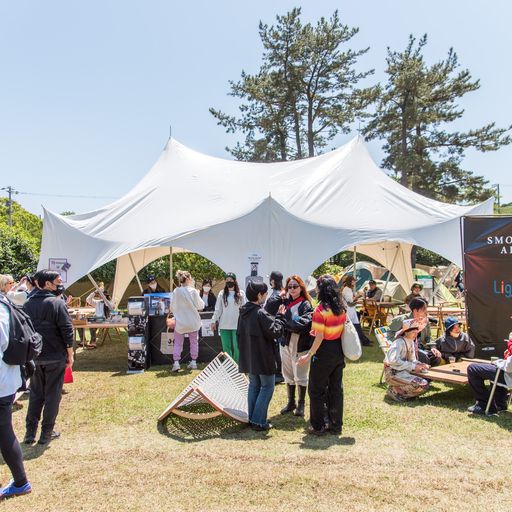 このイベントは訪れた人々も率先してゴミを拾う姿が見られ、会場内ではニコチンもタールも入っていないSMOOTH VIP(スムースビップ)という電子VAPEを推進。その喫煙所にはアウトドアブームに沿ったクールなテントにソファやクッションが置かれたリラックスエリアとなっており、キッズが喜ぶガチャガチャが設置されていたり、宮古島のホテル「LOCAL BASE」の無料宿泊券がもらえるじゃんけん大会も開催されたりと、大人からキッズまで喜ぶ仕掛けが盛りだくさん。今話題のCBDグミとヨガを組み合わせたワークショップなどのコンテンツも用意され、自然派の現代人を癒す思考が凝らされていた。