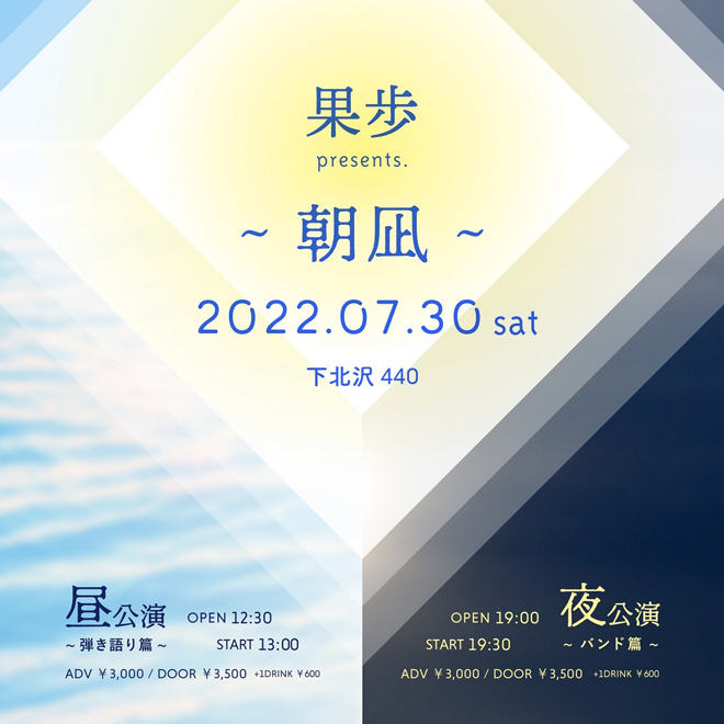 新潟出身のシンガーソングライター・果歩が、自主企画ライブ<朝凪>を7月30日(土)に東京・下北沢440にて開催することを発表した。