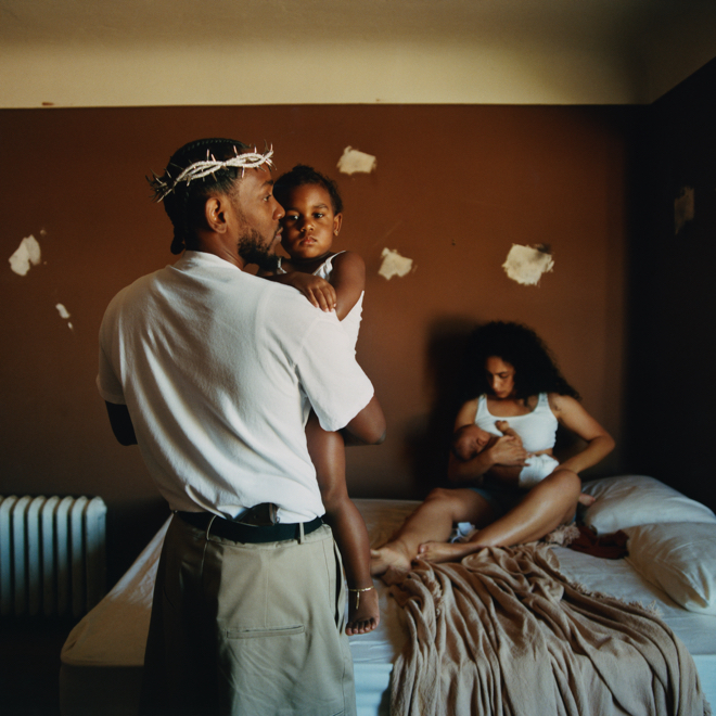 アルバムのジャケット写真はケンドリックと高校時代から連れ添っているパートナー、そして2人の子供たちの姿を描いたもの。我が子を抱くケンドリックはいばらの冠を被り、腰には銃を挿している。