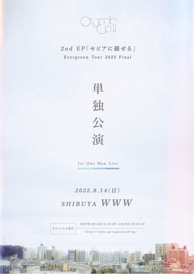 Organic Callが本日5月14日、<Evergreen Tour 2022>初日公演を渋谷CLUB QUATTROにて開催した。