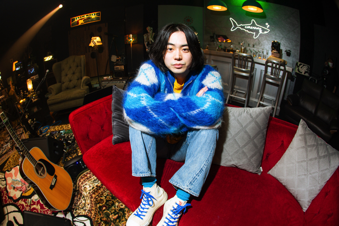 ようやく「ちょっと歌ってみます」と峯田が口火を切り、まずは「夢で逢えたら」をアコースティックギターで弾き語る。フロアには2人きり、しかも向かい合わせという状況は歌う側も見ている側も緊張するようで、どことなく緊張感を讃えた表情で熱唱する峯田を、菅田はグラスを片手に、一緒に口ずさみながら眺める。やがてソファーの上に体育座りになり、時折、目を閉じて聴き入り、最後はソファーに倒れ込み「すごい企画だなあ」と一言。峯田の熱唱に圧倒された様子だった。そんな菅田を見て、峯田は「うまくやろうとか、そういうのはいいよ」とアドバイス。その言葉を受けて、菅田はアコースティックギターの弾き語りで「さよならエレジー」を披露。透きとおった声で実直に歌う菅田の姿を峯田は視線をそらさずまっすぐに見つめていたのが印象的だった。