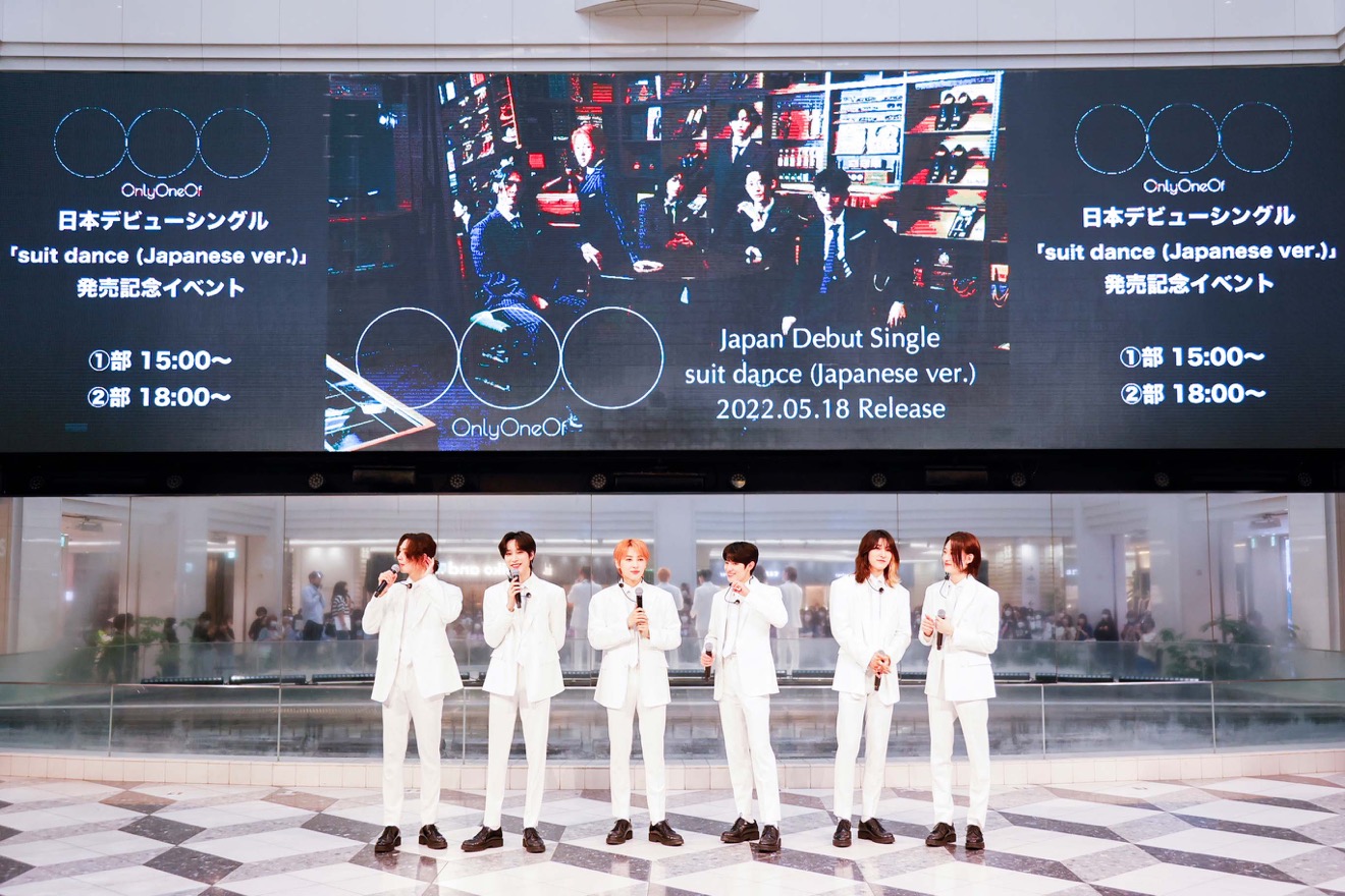 OnlyOneOf(オンリーワンオブ)が、5月18日に発売となる日本デビューシングル「suit dance(Japanese ver.)」の発売記念イベントを池袋サンシャインシティ噴水広場にて開催した。