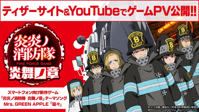 Mrs. GREEN APPLEの新曲「延々」が、スマートフォン向け新作ゲーム『炎炎ノ消防隊 炎舞ノ章』のテーマソングに決定したことは既報のとおり。その一部を聞くことができるゲームPVが、公式YouTubeチャンネル『炎炎ノ消防隊 炎舞ノ章 ch』にて公開された。