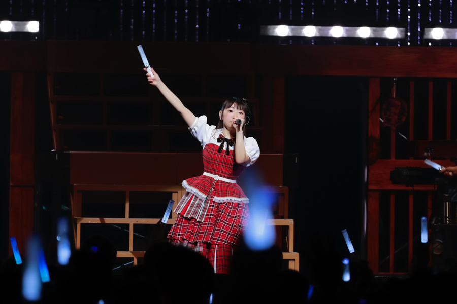 チェックスカートのスクールガール風衣装にチェンジし再びステージに登場すると、「ラブアテンション」「恋する天気図」と続けて披露。振り付けレクチャーをしたあと、自身が作詞を担当した最新アルバムの楽曲「Wake Up」をキュートなダンスでパフォーマンス。ツアーファイナルともなると、劇団員の振り付けもほぼ完璧だ。そして、生セリフも見どころの「半永久的に愛してよ♡」では、ほっちゃんへの愛を表すようにピンク色のペンライトで会場が埋め尽くされた。