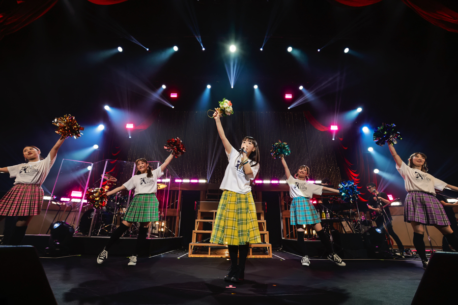 定刻、会場が暗転すると、スクリーンには前回のライブツアー「堀江由衣 LIVE TOUR 2019 文学少女倶楽部」の幕間映像がダイジェストで紹介されたあと、Ⅱと題したタイトル通り、その続きが描かれ、“文学少女倶楽部”のメンバーたちが文化祭でバンドを組むことになるというお話に。ストーリー性をもたせるのが特徴の一つでもある堀江由衣のライブだが、今回は“新たな文学少女の物語”が展開されていく。