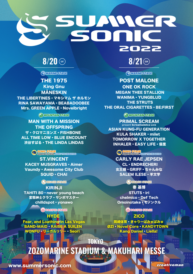 8月20日、21日に東京と大阪で開催される<SUMMER SONIC 2022>の出演アーティストの追加発表が行われた。
