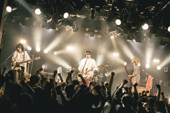 さらに、「あなたに友達はいるかい?」と曲前に平田が問いかけ、会いたい人と会えないコロナ禍の想いに寄り添ってノスタルジックに届けた「Hello My Friend」。別れをテーマにしつつも、軽快な4つ打ちビートと清涼感のあるギターサウンドを心地よく掛け合わせ、今を生き抜くメッセージを紡いだ「眠れない夜には」までをノンストップで披露。ライブバンドとしての実力を遺憾なく発揮し、オーディエンスをますます夢中にさせていく。