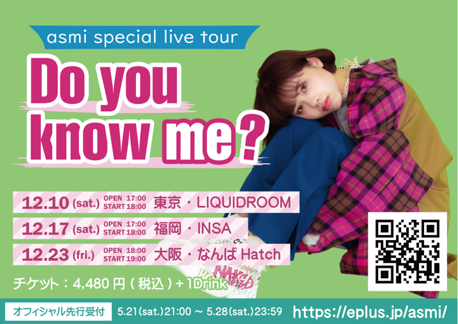 asmiが、<special live tour「Do you know me?」>を12月に開催すると発表した。