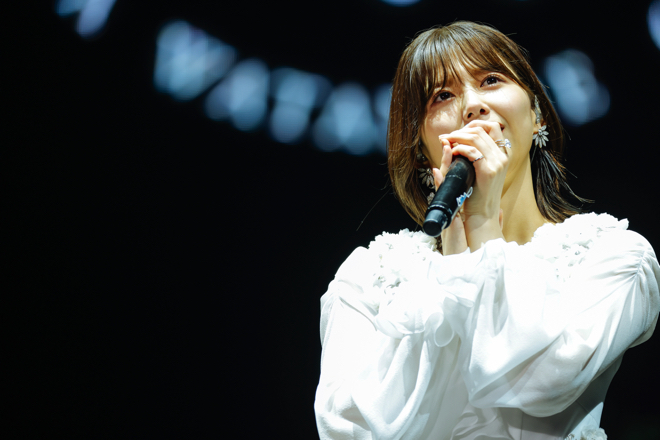 松田里奈を中心としたMCを経て、いよいよ最終ブロックへ突入。最新シングル「五月雨よ」では力強くまっすぐな山﨑天の歌声が、ドラマチックなアレンジとともに会場を優しくも切ない空気で包み込む。その流れで「思ったよりも寂しくない」「Buddies」といったスケールの大きな楽曲が連発され、客席は感動的な空気で充満していった。
