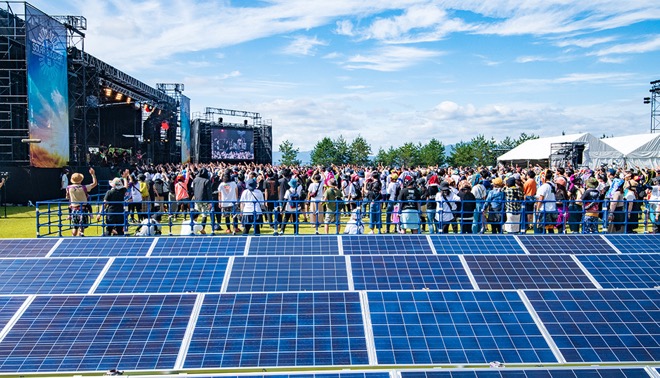 “太陽光でロックする”をテーマに2012年12月の日本武道館からスタートした<THE SOLAR BUDOKAN>は、“太陽光発電のエネルギーを活用したロックフェス”という主旨に多くのアーティストの賛同を得て開催されるライブイベントだ。翌2013年からは岐阜県中津川市に場所を移し、音楽はもちろん、こどもから大人まで楽しめるエリアやコンテンツなどを増設、大規模野外フェスとして年々規模を拡大してきた。