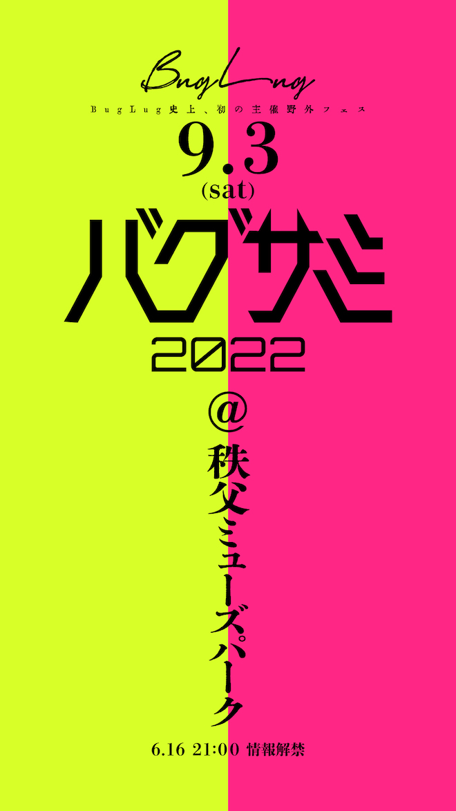 そんな<バグサミ>は今年、9月3日に埼玉県・秩父ミューズパークを舞台に開催される。「BugLug史上、初の主催野外フェス」というキャッチコピーがつけられており、これまでの屋内開催と違い、より夏フェス感が増すイベントになりそうだ。