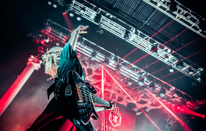 そして影丸 -kagemaru-の確実にキメていく力強く痛快なドラムソロのセクションを挟んでライブは後半戦に。「夢に出てきた島田」「顔が好き」など-真天地開闢集団-ジグザグの禊でおなじみのカオスでマニアックなのにポップなナンバーを連続投下。「今日は何の日? メイドの日」という前振りで甘酸っぱいメロディとメタルが混在する「メイドカフェに行きたくて」も披露され、ということは龍矢 -ryuya-の誕生日はメイドの日なのか?と思わずツッコミたくなる展開。「復讐は正義」で炸裂し、ハードコアな「愛シ貴女狂怪性」になだれこみ、参拝者との約束の曲「Promise」が会場をすっぽり包み込んだ。そして最後のMCへ。