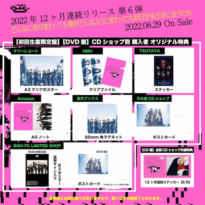 BiSH FC LiMiTED SHOPオリジナル特典:(初回生産限定盤)メンバー全員直筆サイン入りポスター/(DVD盤)ポストカード