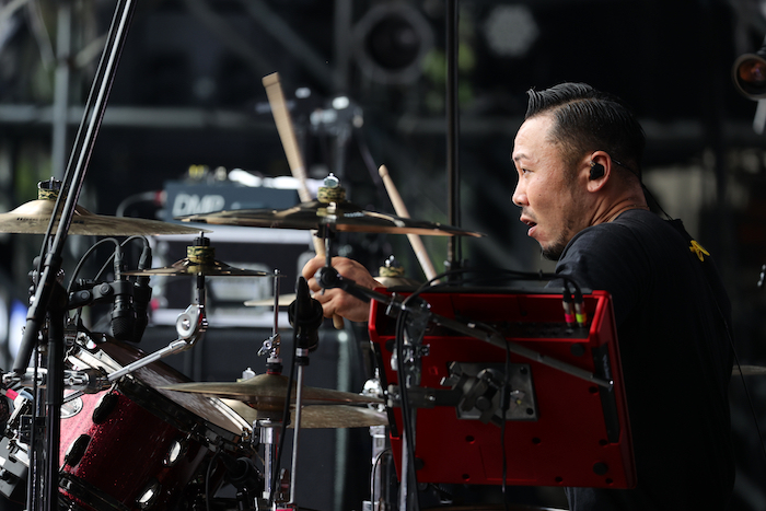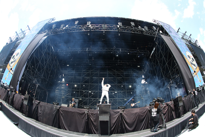 HIDE(G)、YU-KI(B)、UTA(Dr)、両手を広げてAG(Vo)が最後に現れると、「Hunter of Prey」でショウの火蓋を切った。ヘヴィな演奏にラップやクリーンヴォーカルを織り混ぜ、ド頭から観客を縦横に揺さぶっていく。