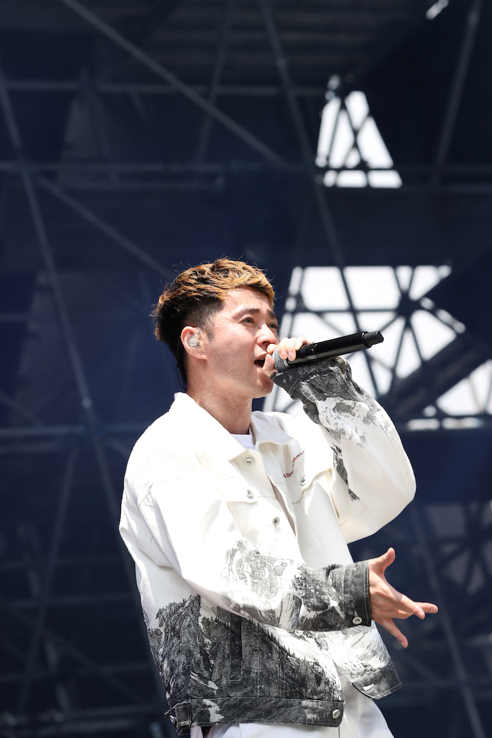 「<SATANIC>、今ここでテッペンをぶち抜こうぜ!」と煽ると、「Something New」へ。推進力を高める演奏に比例し、サビの突き抜けっぷりも素晴らしい。さらに「カゼを起こせ!」と曲中に何度も呼びかけ、序盤から前傾姿勢で焚きつける。続く「BETTER DAYS」においてはポジティヴなメロディを解き放ち、ゴスペル風メロディでドラマティックに展開する流れも屋外という景色にとてもマッチしていた。