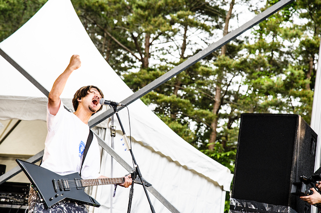 しかし「すすれ-Re麺ber-」が始まった途端、HIKIDA YUSUKE (G,Vo)の弾くリフはメタル度マシマシ、明生(Dr,Cho)の叩くリズムはハードコア度もマシマシ。HELL STAGEにふさわしい地獄に陥れるようなラウドぶり。ところがサビでは、腕を左右に振りたくなるメロディも。