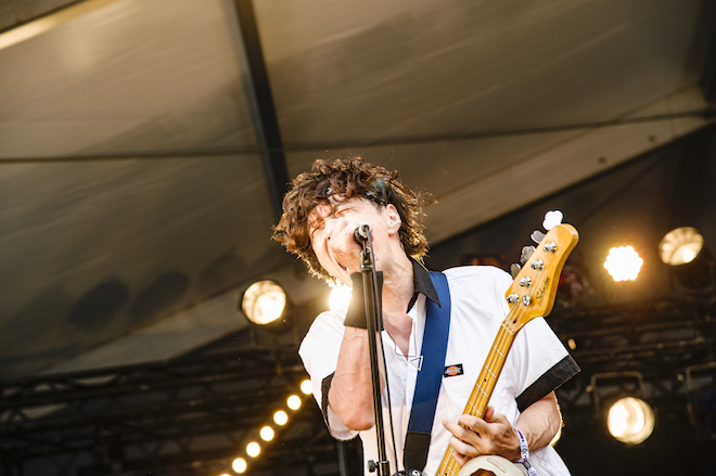 SHINYA SYODA(B,Vo)は楽しそうにジャンプしながらベースを弾きまくる。身体が勝手に反応してしまう、ありとあらゆる音楽要素をぶち込んでいるのがSHIMA。曲の各所ではみんなでひとつになる振りも、盛りだくさん。ワチャワチャ感いっぱいの客席エリアとなった。