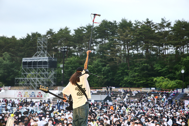 ラストを飾ったのは、「HANG OVER」。メロディックハードコアと思いきや、daiponとtakumiが掛け合う歌も含め、そんな範疇に収まらないフリーキーな構成がまさにENTHの真骨頂。エモいサビを持ちながら、紆余曲折こそがこの曲の聴きどころだと言わんばかりの展開が痛快だった。安易に盛り上げて“はい、おしまい”とせず、そういう曲を最後に持ってきたところに観客やフェスの空気に媚びないENTHの向こう意気を感じて、筆者は思わず快哉を叫んだのだった。