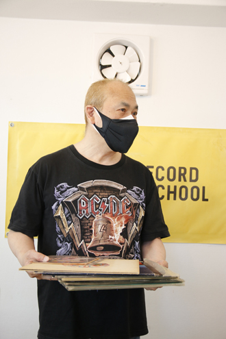 「どうせなら自分の好きな曲でDJをやりたいと思って、アナログ盤を持ってきました」と、ロッククラシックの名盤を数枚開帳。しかしながら、先生は困惑気味の様子。