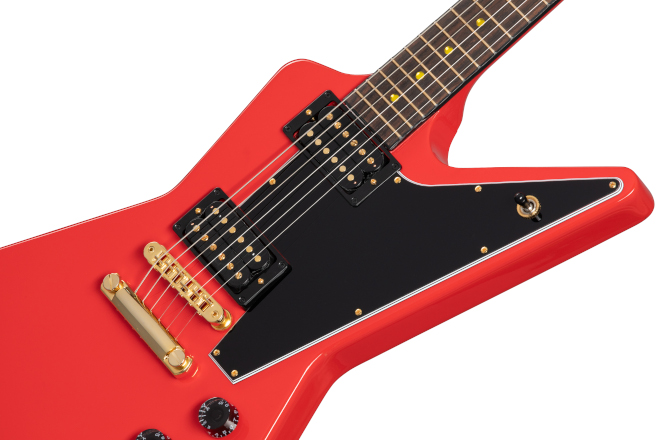 ヘビーミュージックに対応すべく製作された彼女の新しいエクスプローラーバードは、ハードロックを象徴するトーンとルックスを持ち合わせている。クラシックなエクスプローラーのボディシェイプとノンリバース・ファイアーバードのヘッドストックを融合させたアーティストモデル。カーディナル・レッドのニトロセルロースラッカー仕上げにゴールド・ハードウェアを採用、そしてパワフルな70sトリビュート・ピックアップを搭載。モダン・シリーズのハードシェル・ケースが付属する。