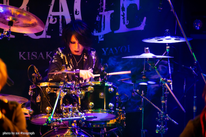 KISAKIは、先ほどまでの白熱したステージで完全燃焼し今にも倒れてしまうのではないかという姿になりながらも感慨深く話す。鹿鳴館店長PEPE氏をステージに招き、また戻ってくることを約束。ヴィジュアル系を、鹿鳴館を愛する彼らしい演出であった。最後の最後まで手を差し伸べるファンたちを彼は目に焼き付けるように見渡し、名残惜しそうに去ってステージは終幕した。