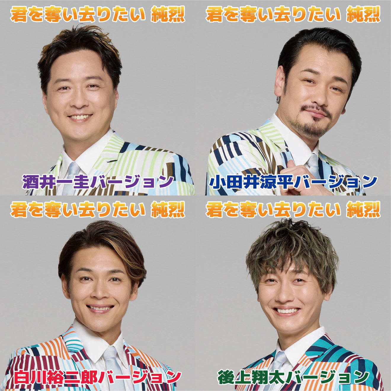 純烈のシングル「君を奪い去りたい」Cタイプ、Dタイプ(6月8日発売)リリースを記念して、純烈メンバーが購入者の名前を呼ぶボイスメッセージ付きの「君を奪い去りたい -スペシャル配信パッケージ-」が、配信スタートした。