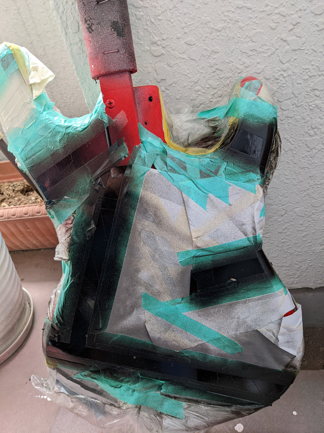 サスティーンやナットヘの負担の関係から指板上の弦→ナット→ペグはストレート(つまりストラトと同じ)にしたかったのでバナナヘッドもどきにしています。ついでにレリックも施し。細部でオリジナルと異なるけど、こいつは鳴る!