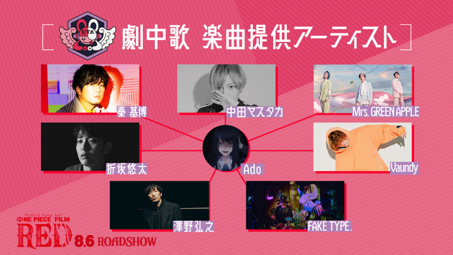 『ONE PIECE FILM RED』、Adoがウタの歌唱パート担当。中田ヤスタカら7組が楽曲提供