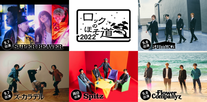 <ロックのほそ道>は2010年に始まり、今回で11回目を迎えるレギュラーイベント。9月7日の<Day1>には2018年以来2回目の出演となるSUPER BEAVERと初出演のズーカラデル、8日の<Day2>には2019年の10周年公演にも出演したsumikaと、最多7回目の出演となるフラワーカンパニーズが参加する。